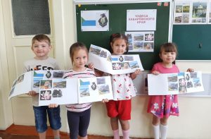 20 октября наш замечательный край отметил свой День рождения. Понедельник патриотической недели был посвящён этому праздничному событию. Дошколята расширили свои знания о геральдике и чудесах родного и удивительного края. Ребята слушали, играли, вырезали, клеили. Результатом образовательной деятельности стало создание альбома «Семь чудес Хабаровского края».