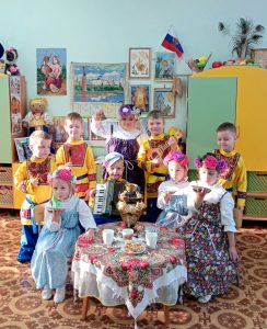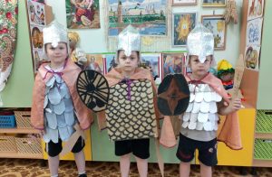 В нашем дошкольном учреждении продолжается череда мероприятий патриотической направленности. Педагоги планируют деятельность согласно плану тематической недели. Мероприятия благодаря усердию и стараниям педагогов яркие, увлекательные и, конечно, познавательные. В четвёртый день патриотической недели в детском саду по плану музыкального работника состоялась ТЕАТРАЛИЗАЦИЯ по мотивам русских народных сказок, прошли занятия, посвящённые самому родному человеку – маме. А ещё, что очень важно, прошли занятия, направленные на расширение и углубление знаний в области НАРОДНОГО ИСКУССТВА. Также в указанный период в подготовительной к школе группе прошло познавательное мероприятие «БОГАТЫРИ — ЗАЩИТНИКИ ЗЕМЛИ РУССКОЙ». В лёгкой увлекательной форме педагог углубила и систематизировала знания ребят о защитниках ДРЕВНЕЙ РУСИ посредством синтеза искусств (мультипликация, музыка, поэзия, изобразительное искусство). Благодарим наших замечательных педагогов за отличную работу!
